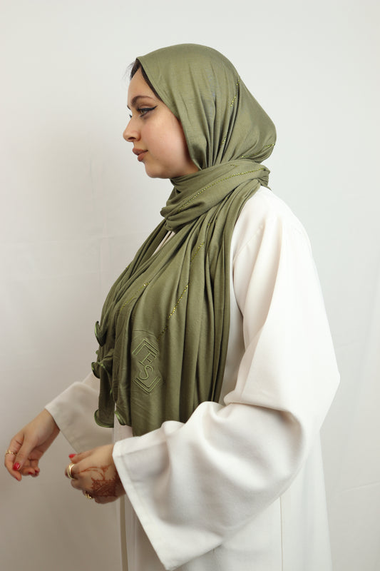 Premium Jersey con Strass + Embroidery Σ Olive
